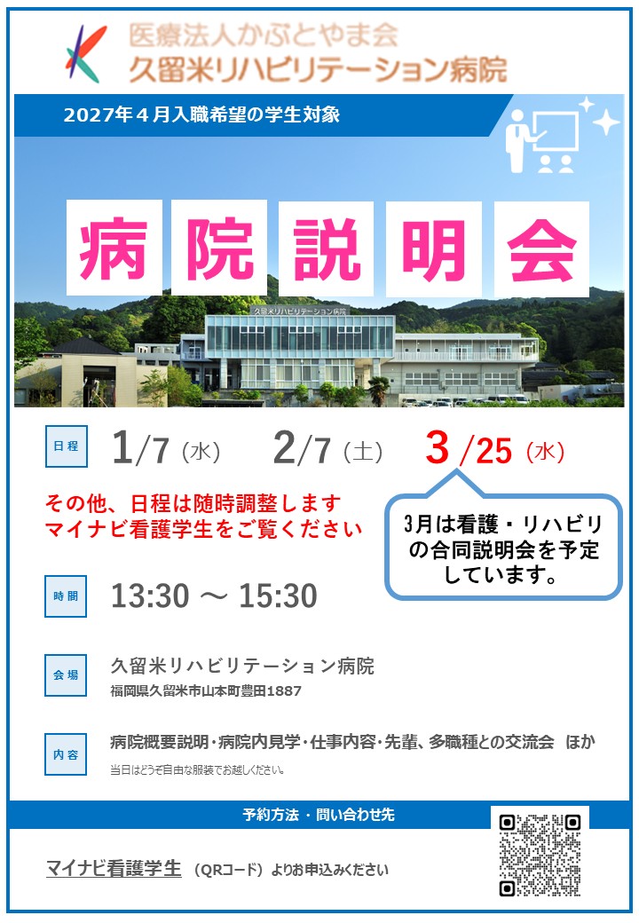 2027年4月入職希望の学生の皆さんを対象とした病院説明会を開催します。
